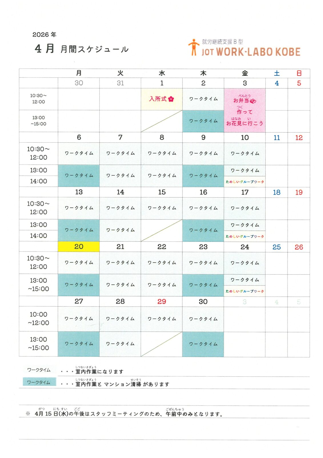 JOTワークラボ神戸でも、支援学校を卒業された4人の方をお迎えし、入所式を行う予定です!