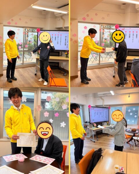 アットホームな雰囲気の中で、とても素敵な「はじまりの会」を行うことができ、4名の新メンバーさんも、社会人として新たな一歩を踏み出されました!